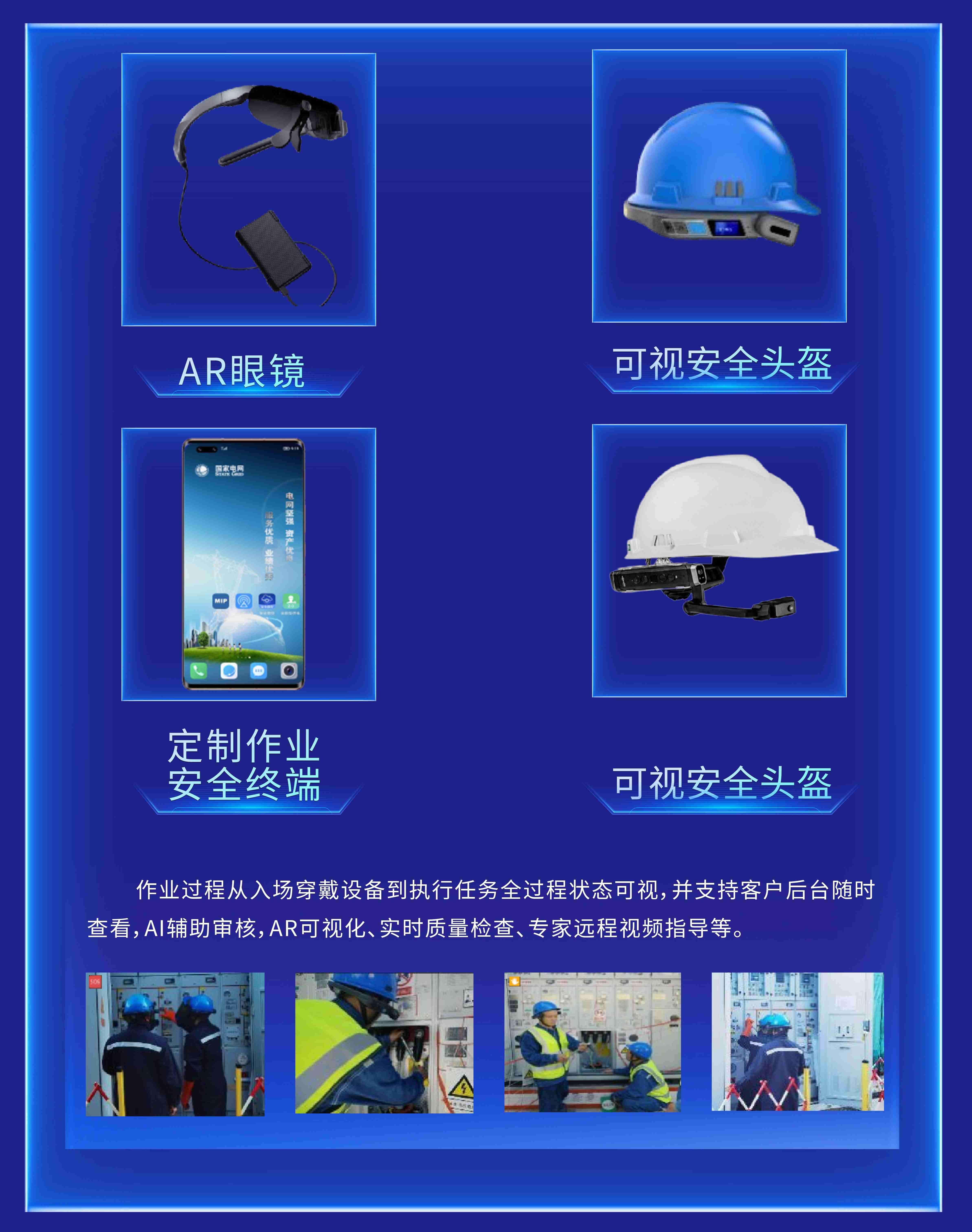 天寬科技憑借深厚的技術積累和對電力行業(yè)的深刻洞察,自主研發(fā)了一系列電力作業(yè)場景智能終端裝備,包括定制化作業(yè)終端、AR眼鏡、可視安全頭盔等。這些設備緊密貼合電力作業(yè)的實際需求,可實現(xiàn)作業(yè)過程從入場穿戴設備到執(zhí)行任務全過程狀態(tài)可視,并支持后臺隨時查看、AI輔助審核、實時質量檢查、專家遠程視頻指導等,為電力作業(yè)的高效、安全執(zhí)行提供了全方位的技術支持。