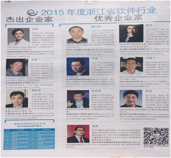 熱烈祝賀我司榮膺“2015年度浙江最佳創(chuàng)新軟件企業(yè)”稱(chēng)號(hào)